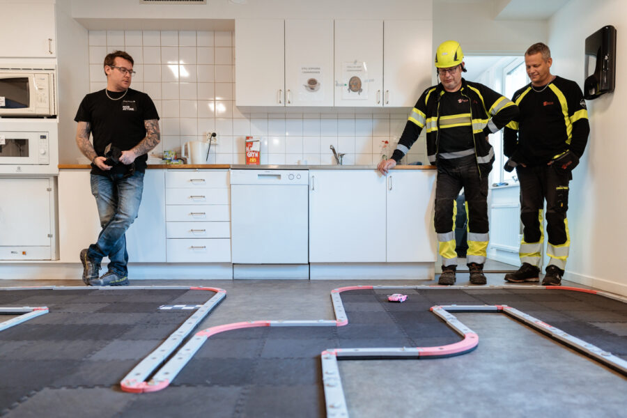 – Jajamän! När jag flyttade till Tranemo fanns ingen bana här, så jag frågade chefen om vi kunde ordna något. Jag fick använda ett gammalt kontor som verkstad och ett lunchrum som står tomt på helgerna, där jag kan lägga ut banan. Några kollegor har testat, andra skakar mest på huvudet åt mina små bilar, men det bjuder jag på. För mig är det ett perfekt sätt att varva ner efter jobbet.