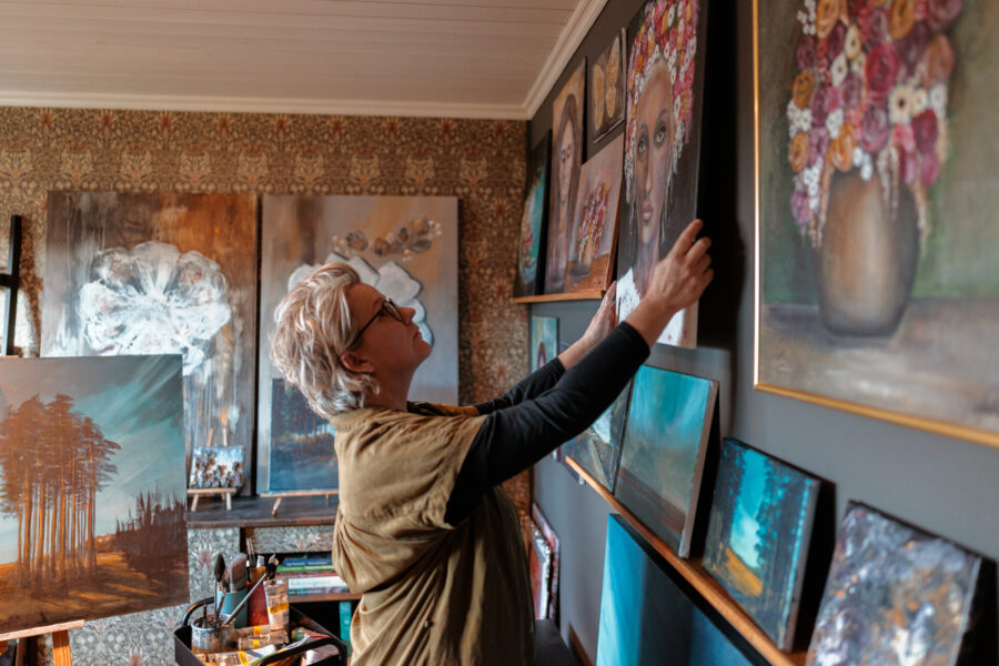 – Jag har alltid tyckt om att måla och vara kreativ. Men när barnen var små fanns varken tid eller plats. Under en stressig period 2020 kände jag att jag behövde något eget, något som gav mig lugn. Då plockade jag fram penslarna igen och började måla i akryl. För mig är själva processen viktigare än resultatet – måleriet är som terapi.