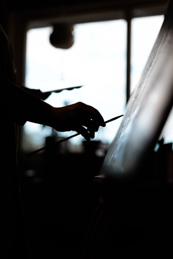 – Nej, penslarna stannar hemma. Men min kreativitet använder jag på andra sätt, till exempel när jag löser problem eller hittar nya lösningar. Jag ser en rolig kontrast mellan min hobby och mitt jobb: på jobbet är jag noggrann och strukturerad, men när jag målar tillåter jag mig själv att vara slarvig och spontan.