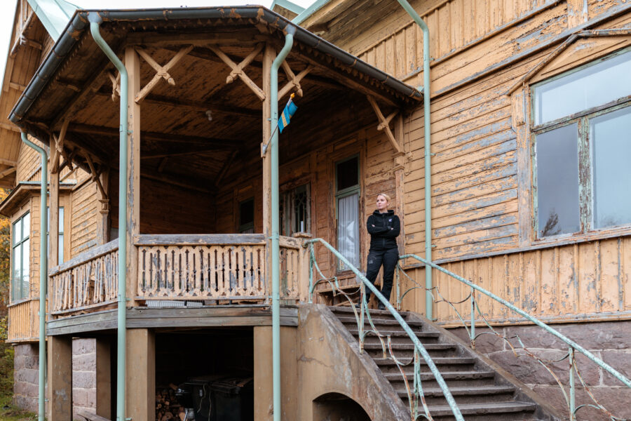 – Martin hade pratat om det i flera år. Det såg ju fallfärdigt ut, men när vi åkte dit och tittade in i salongen genom fönstren var det kärlek vid första ögonkastet. Vi ringde ägaren, och två veckor senare hade vi nycklarna. Huset är från 1897 och hade stått tomt i 25 år. Det var lite galet att ta sig an det, men vi tänkte att i värsta fall får vi sälja?