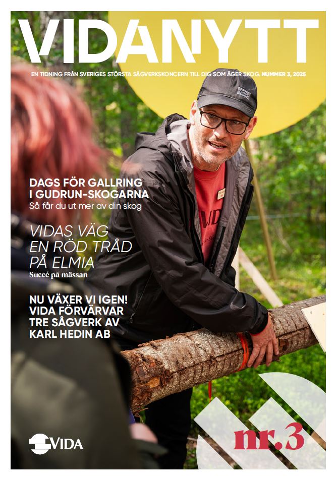 Vida Nytt är skogsägarnas egen tidning. Innehåller artiklar, reportage och senaste nytt från Vida och skogens värld. Som skogsägare och samarbetspartner till Vida får du tidningen hem till din brevlåda några gånger per år.